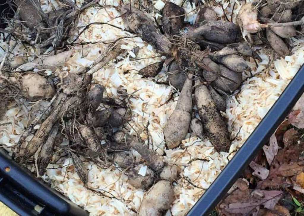 Порой корешки с опилками консервируют в пакеты. Это недопустимая ошибка, так как вследствие образуемого конденсата корни цветка в полиэтилене загнивают. От повышенной влажности корнеклубни гибнут.