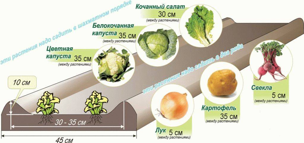 Важно! Лучше выбирать для работ пасмурный или даже дождливый день. При высокой влажности воздуха и нежаркой погоде, рассада чудесно приживётся.. Схема посадки цветной капусты 35 см на 50 см