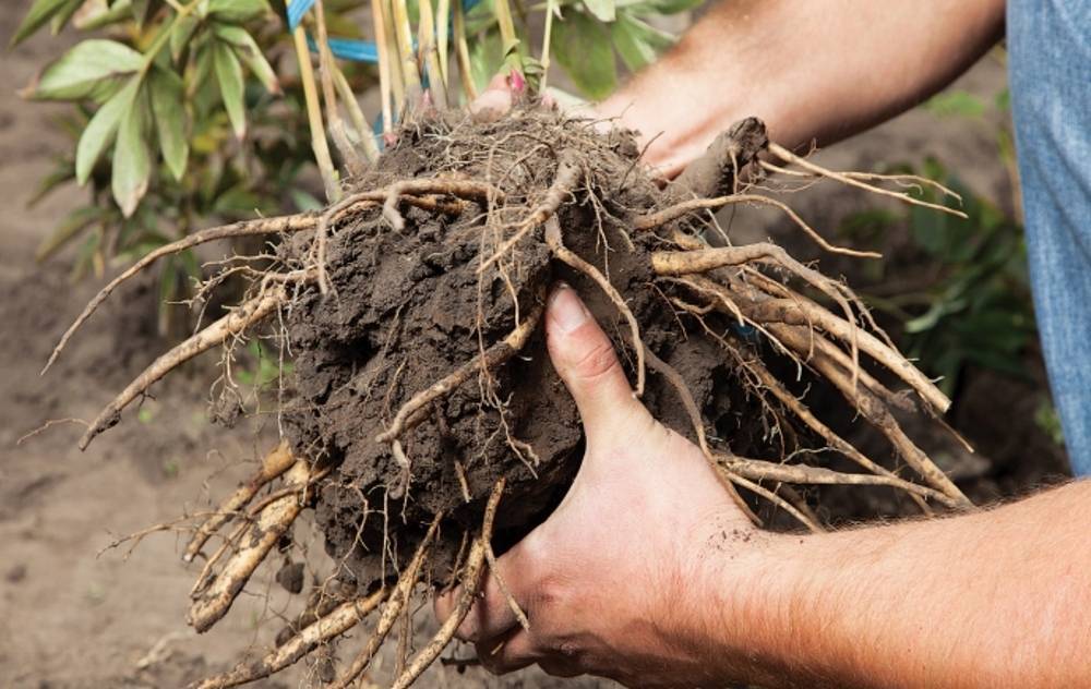 Для максимального удобства доставать обрезанный пион рекомендуется вилами. Не стоит вытягивать растение из земли за стебли – это может повредить его корни и почки, которые находятся в его основании и начинают развиваться на много лет вперед.