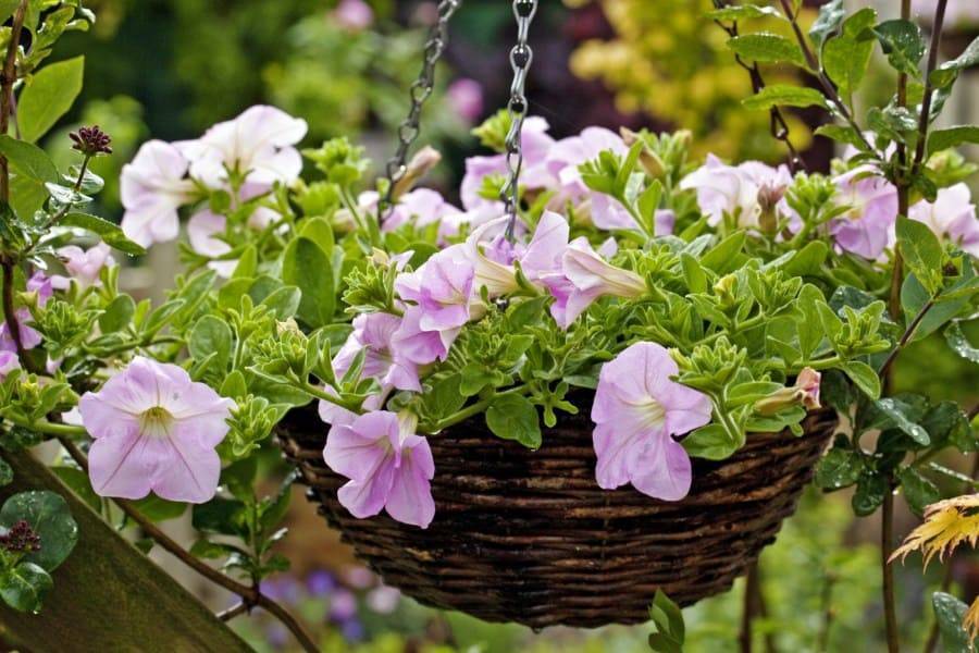 Кустовая петуния тоже может отлично смотреться в кашпо, если сформирована правильно.