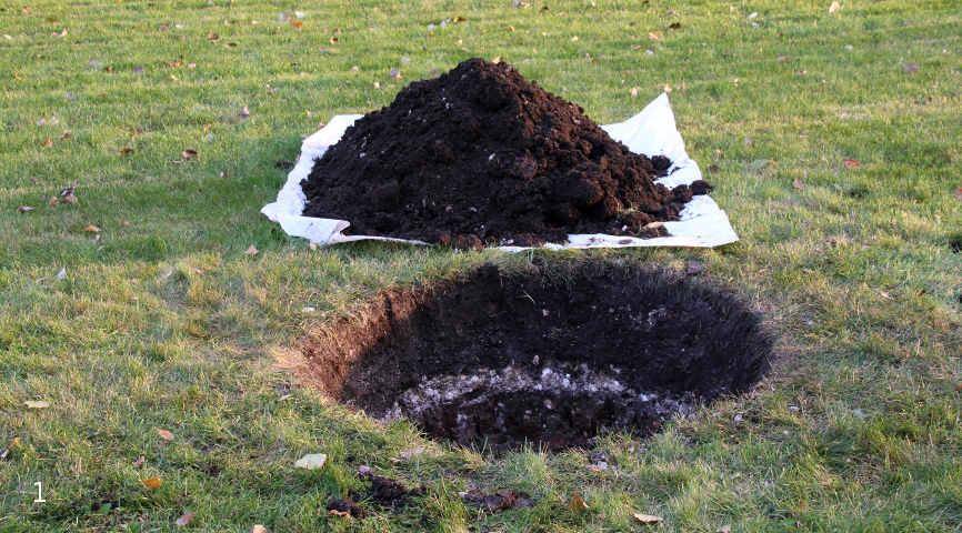 Нужно подготовить яму (следовать нужно правилам выше). Размер ее не должен превышать полметра в глубину и метра в ширину.
