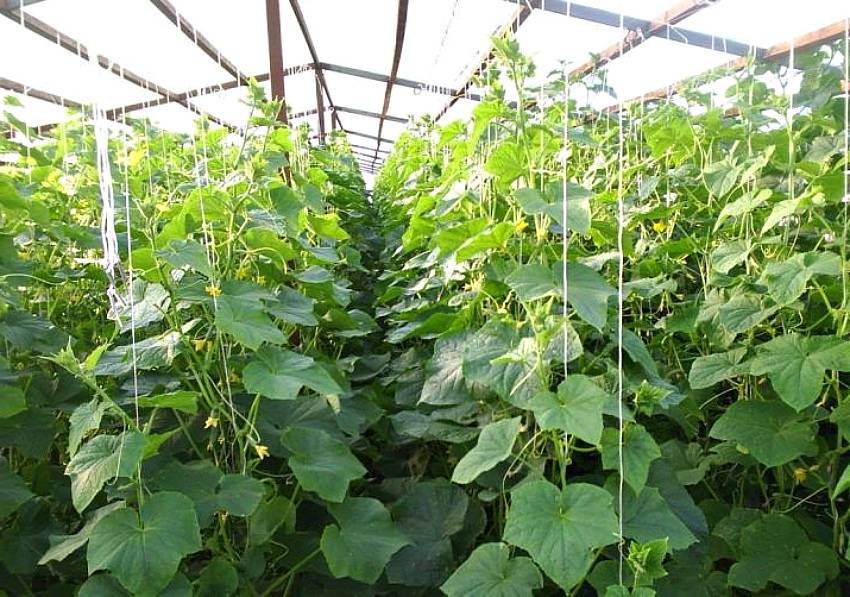 Чтобы улучшить освещенность огурцов, их принято выращивать на шпалере