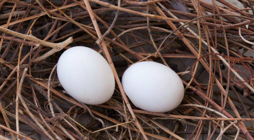 Голубка сносит два небольших яйца, белого цвета или с легким голубым отливом