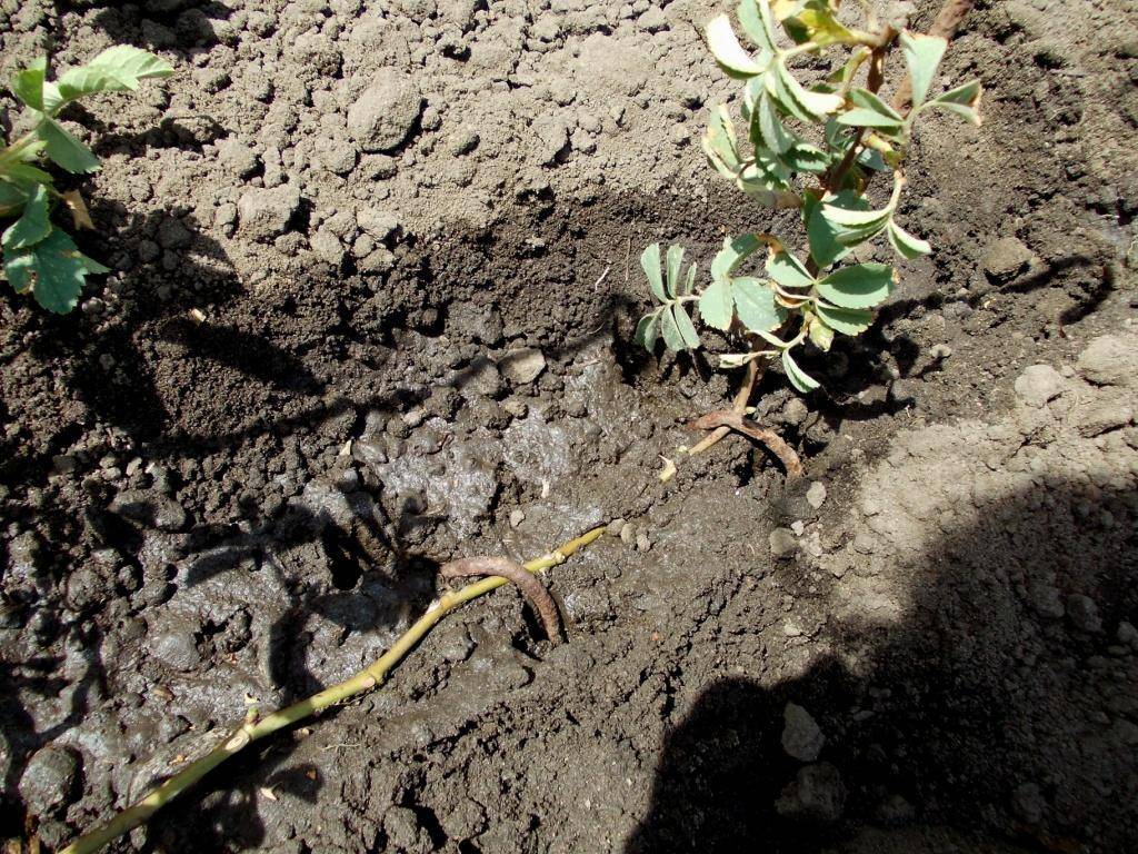 Засыпать побег подготовленным плодородным грунтом и хорошо полить.