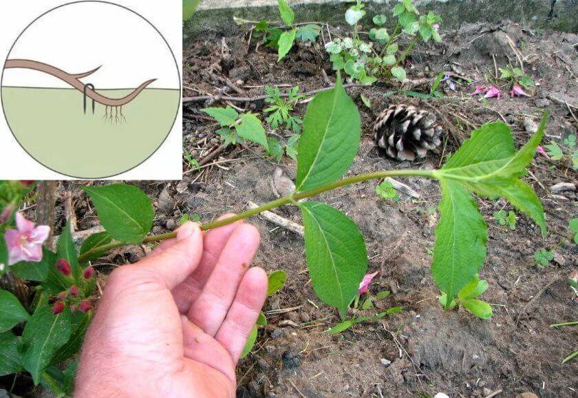 Размножение вейгелы отводками и делением кустарника