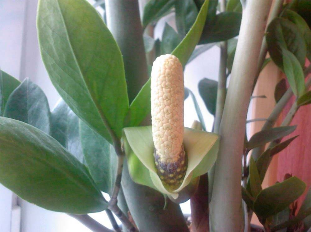 В домашних условиях замиокулькас цветет крайне редко. Опытные цветоводы считают появление соцветия признаком скорой гибели растения. Семена в неволе не завязываются, даже при искусственно проведенном неоднократном опылении. Поэтому получить их самостоятельно практически невозможно.
