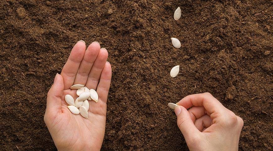В лунку необходимо внести органические удобрения, перемешав их с землёй, и полить тёплой водой. Если грунт лёгкий, то семена высаживают на глубину около 7 см, а в тяжёлый грунт — на 4 см. Лучше всего опускать по 3 семени в лунку. При всходе нескольких ростков нужно оставлять самые сильные, а остальные удалить. Далее ямки нужно закопать и утрамбовать. Чтобы не образовалась земляная корка на поверхности, её можно замульчировать перегноем, соломой или торфом.