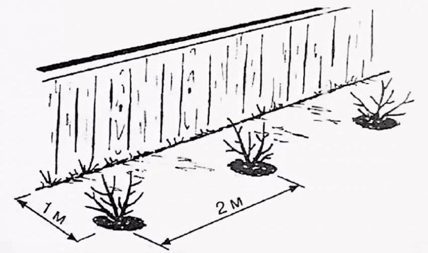 Для кустарников или вьющихся сортов правильное расстояние составляет от 1,5 до 4,5 м. Не нужно пугаться такого большого расстояния, поскольку на одном месте растение прекрасно может жить и радовать хозяев до 25 лет. Кроме этого, нужно исходить из того, насколько разрастается тот или иной сорт. Существуют сорта, которые при создании идеальных условий могут достигать со временем до 8 м в высоту, с разрастанием вширь до 3 м.