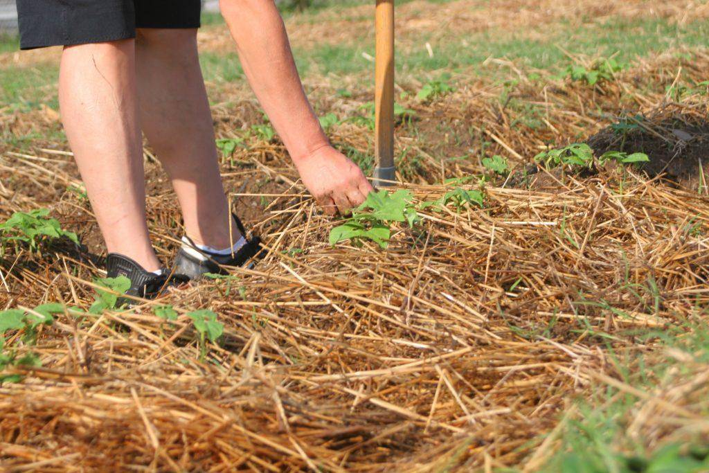 Это также подходит ко всем выращиваемым культурам. В отличие от сена скошенная трава сразу же выделяет углекислый газ. Слой мульчи положить 5-7 см.