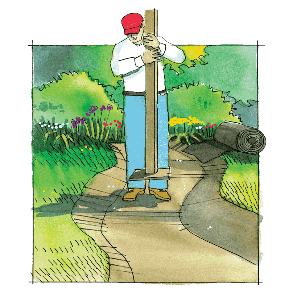 - По заранее намеченному контуру следует вырыть небольшое углубление в земле. Глубина рва должна составлять примерно 20-30 см. Стенки и дно канавы выравниваются при помощи садовых граблей.