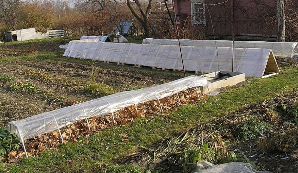 - После замерзания почвы торцы щита забиваются, а само укрытие накрывается пленкой.