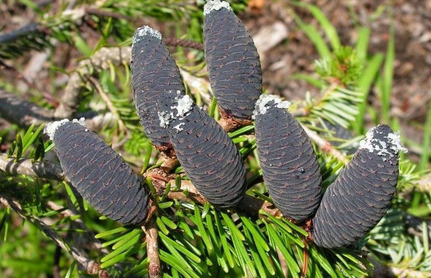 В возрасте 30 и более лет пихты украшают шишки. Они появляются в верхней трети кроны, обычно более темного цвета и стоят на ветках свечками.