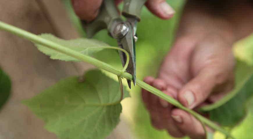 Во время выращивания рассады обрезку не проводят, так как молодые ростки ещё недостаточно окрепли, и эта процедура может неблагоприятно повлиять на дальнейший рост гортензии. Первый раз побеги укорачивают только после пересадки саженцев в открытый грунт, когда им исполнится 3 года. Но если при выращивании рассады на ней появляются бутоны соцветий, то их срезают, чтобы растения тратили силы исключительно на рост корней и зелёной массы.
