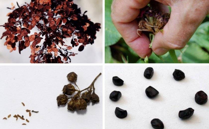 Можно заготовить семена гортензии самостоятельно. Эта процедура выполняется в сухую погоду после цветения, когда на растении образуются плоды в виде небольших коробочек. Они появляются только на растущих в центре кустарника мелких и невзрачных цветках, которые называют фертильными. Яркие и пышные соцветия обладают красивым внешним видом, но являются стерильными.