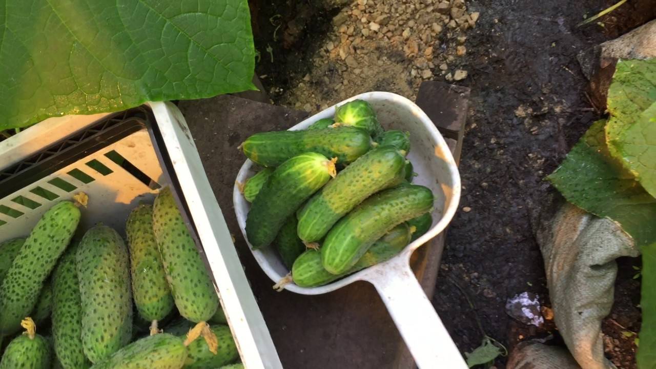 Первый урожай ранних огурцов мы сняли 10 мая: месяц был жаркий, разница между ночной и дневной температурами была несущественная, поэтому огурцы стали активно и стабильно давать урожай, и со второй половины июля я снимала как минимум ведро огурцов в день. Бывали дни, когда мы снимали даже до двух ведер огурцов, поэтому я продолжала активно кормить плети в течение всего периода вегетации, проводила подкормки по листьям и под корень, несмотря на то, что почва была очень хорошо удобрены еще перед посадкой в нее сеянцев.