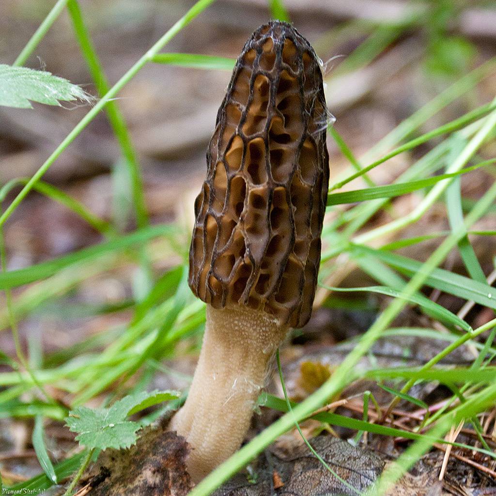 Продолжают более активно плодоносить, после первого апрельского урожая, сморчки разных видов.