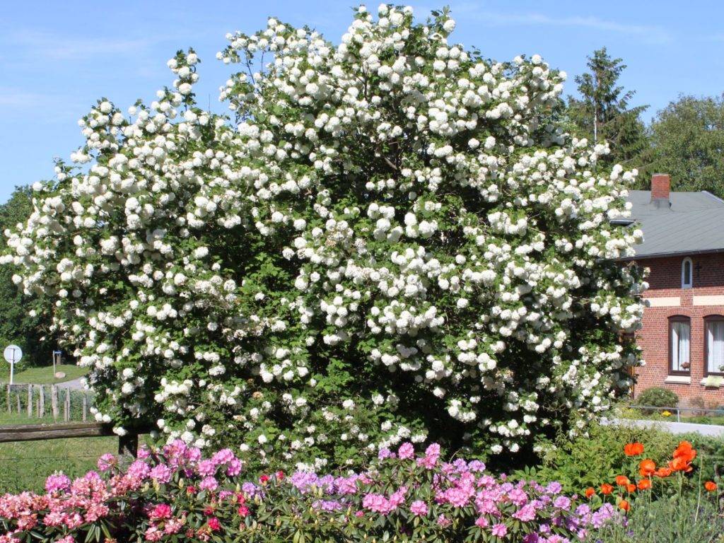 Их отцветание происходит до того, как начнет цвести Бульденеж, поэтому калиновый куст не будет обделен вниманием. Через несколько лет ветви куста станут опускаться, и он будет похож на вавилонскую иву