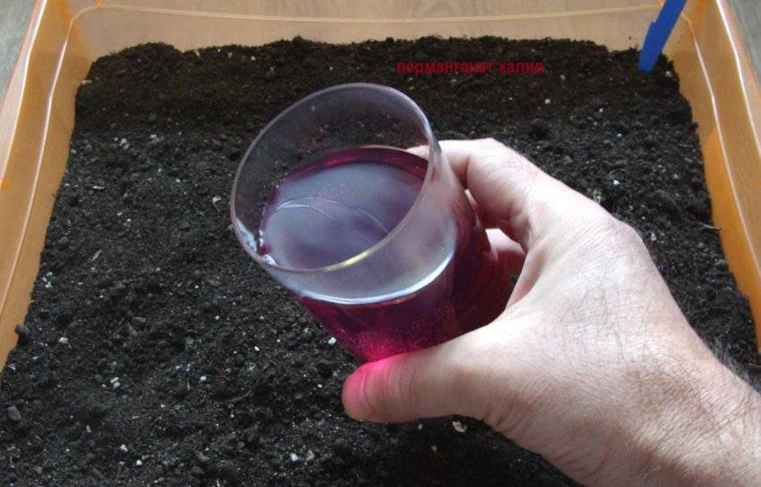 - Подготовка и заполнение тары. Емкости должны быть глубиной 8 см и более. Тару продезинфицировать раствором марганцовки, наполнить почвосмесью.