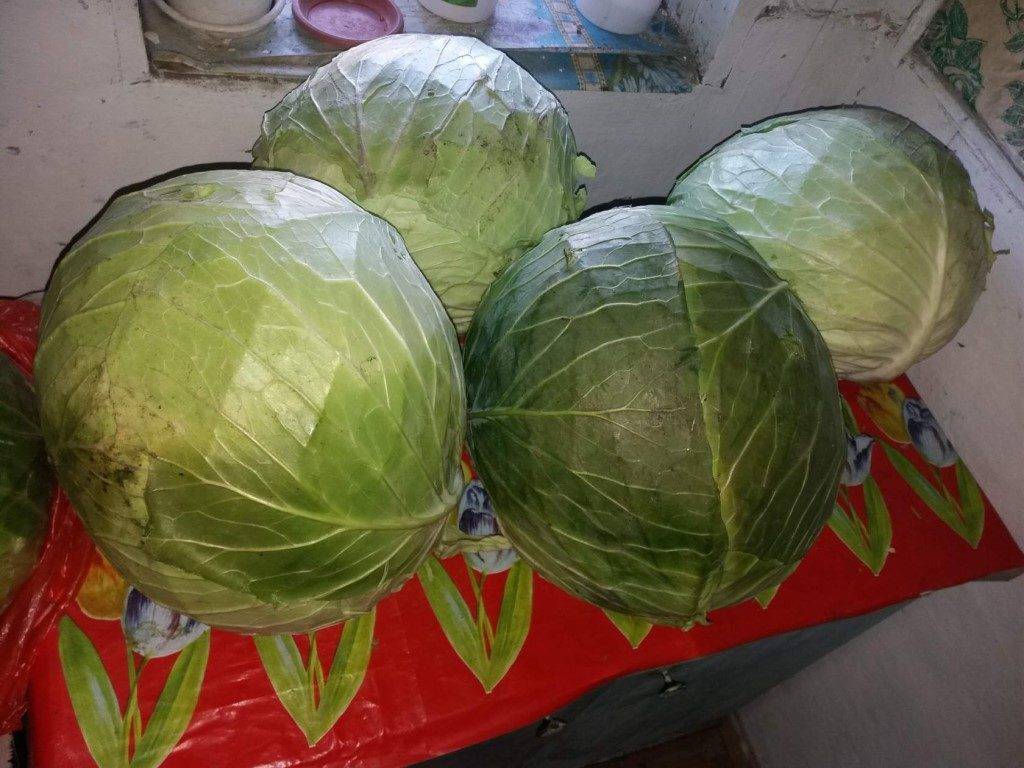 Кочан крупного размера, средний вес колеблется от 8 до 15 кг.