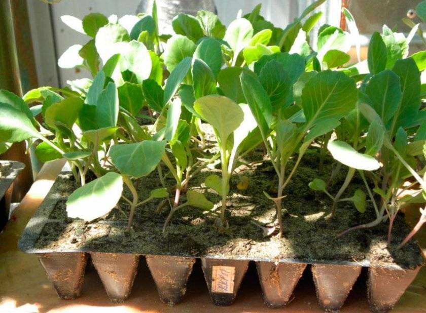 Ёмкости сверху накрывают и ставят в тёплое место (+18…+20°С). Ростки капусты при таком температурном режиме появятся примерно через 5 суток. При их появлении рассадные ёмкости переносят на самое освещаемое место с температурой +10…+12°С. Через неделю температурный режим повышают до +15…+17°С. Световой день должен находиться в пределах 12–15 часов. Рассаду регулярно поливают, но без переувлажнения. Пикировку делают через 2 недели после появления всходов, если она планировалась.