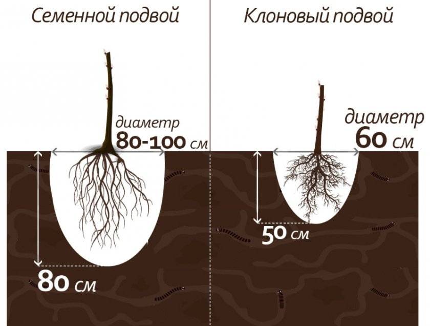Здесь важно учитывать особенности высадки юных деревьев на вегетативных и вставочных подвоях