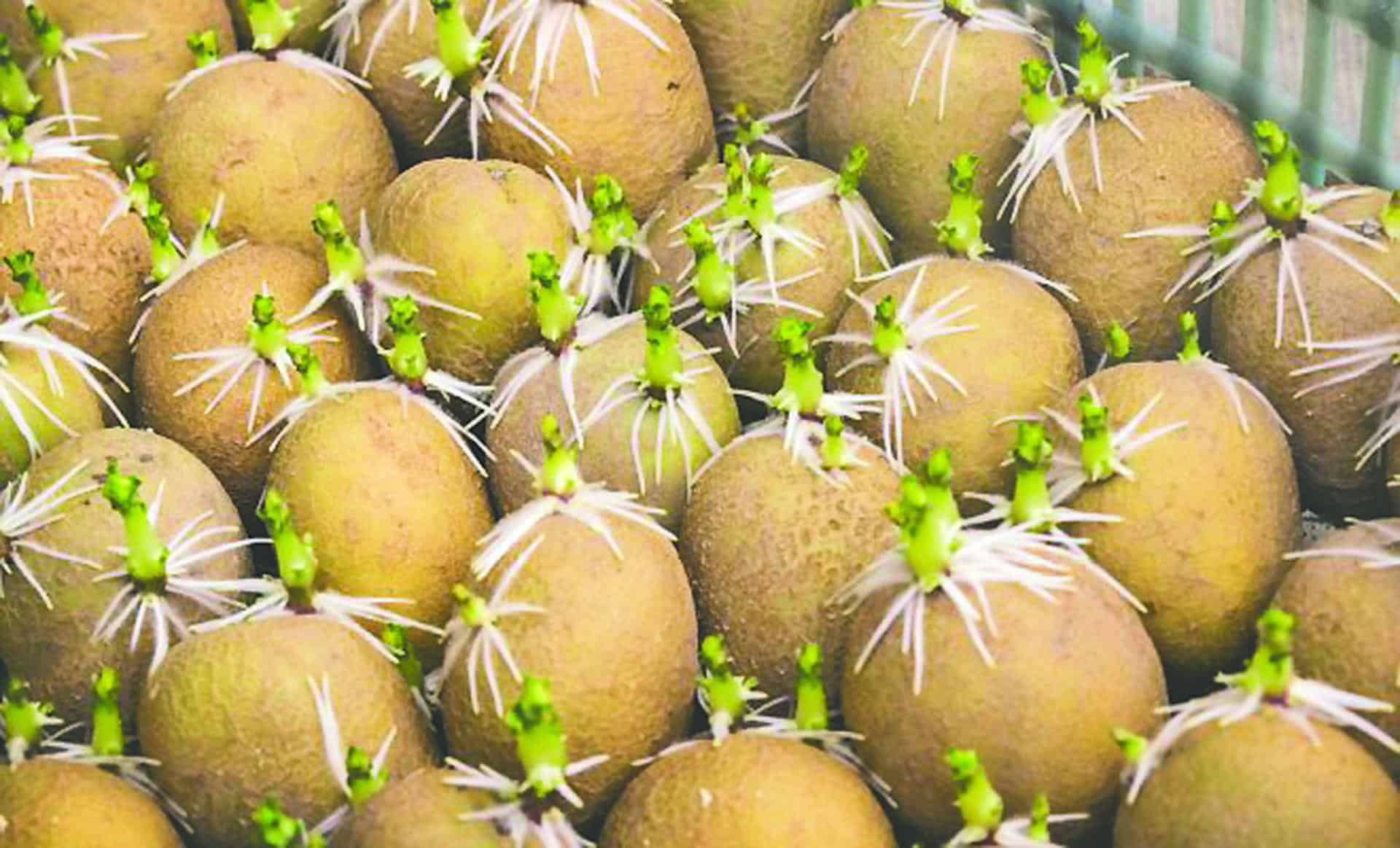 Чтобы повысить урожайность, при проращивании картофеля два раза опрыскивают клубни минеральными удобрениями.