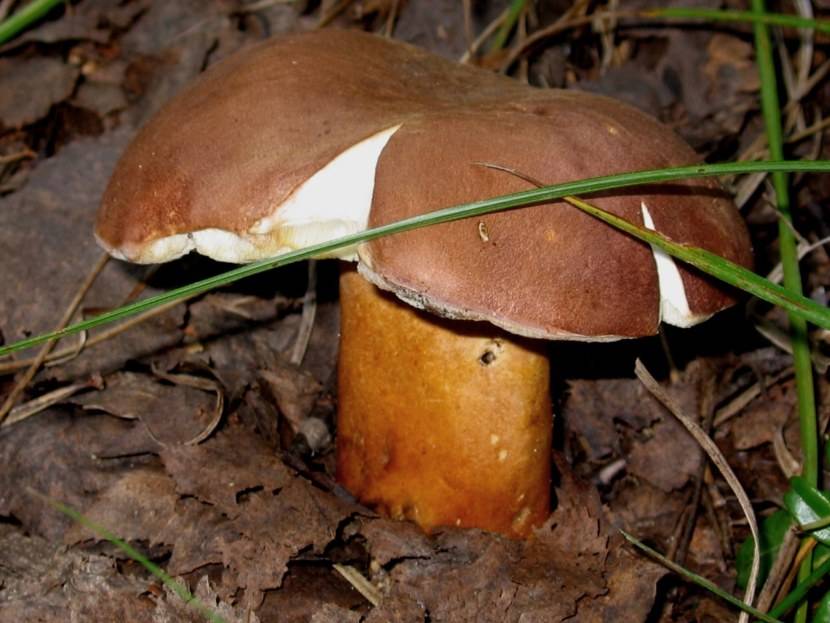 Очень часто начинающие грибники делают ошибку, считая каштановик белым грибом. Но у них есть существенное различие — ножка гипоруса каштанового коричневая и пустотелая внутри, а у боровика матово-серая.