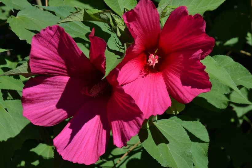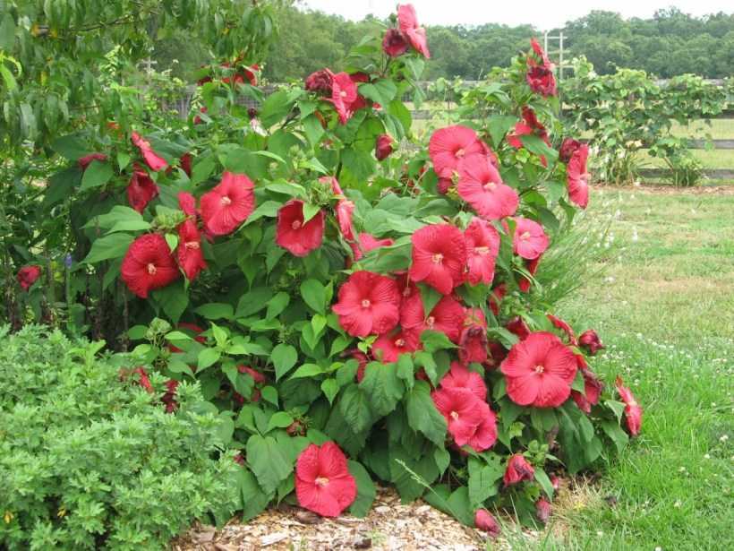 Гибискус болотный отличается крупным размером цветов и яркой окраской венчика