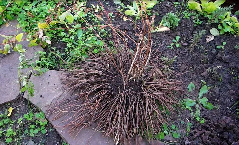 - делят корневую систему огородной лопатой на части, чтобы у каждой оставалось по одному стеблю и несколько корешков;