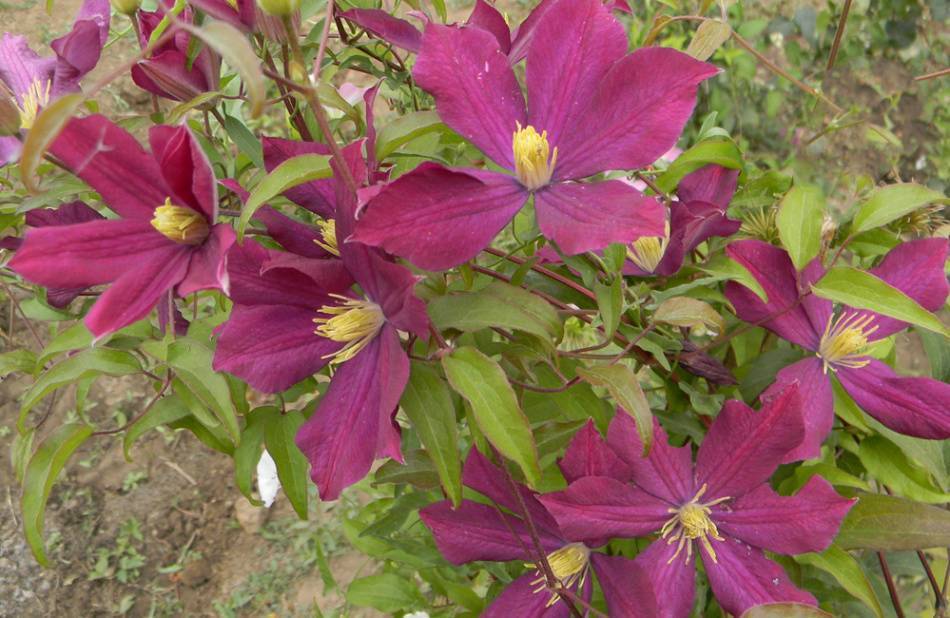 Клематис Рубра отличается от остальных очень маленькими листками. Из-за этого цветы более заметны на кусте, их диаметр 6–7 см. Сорт отлично подходит для беседок и веранд.