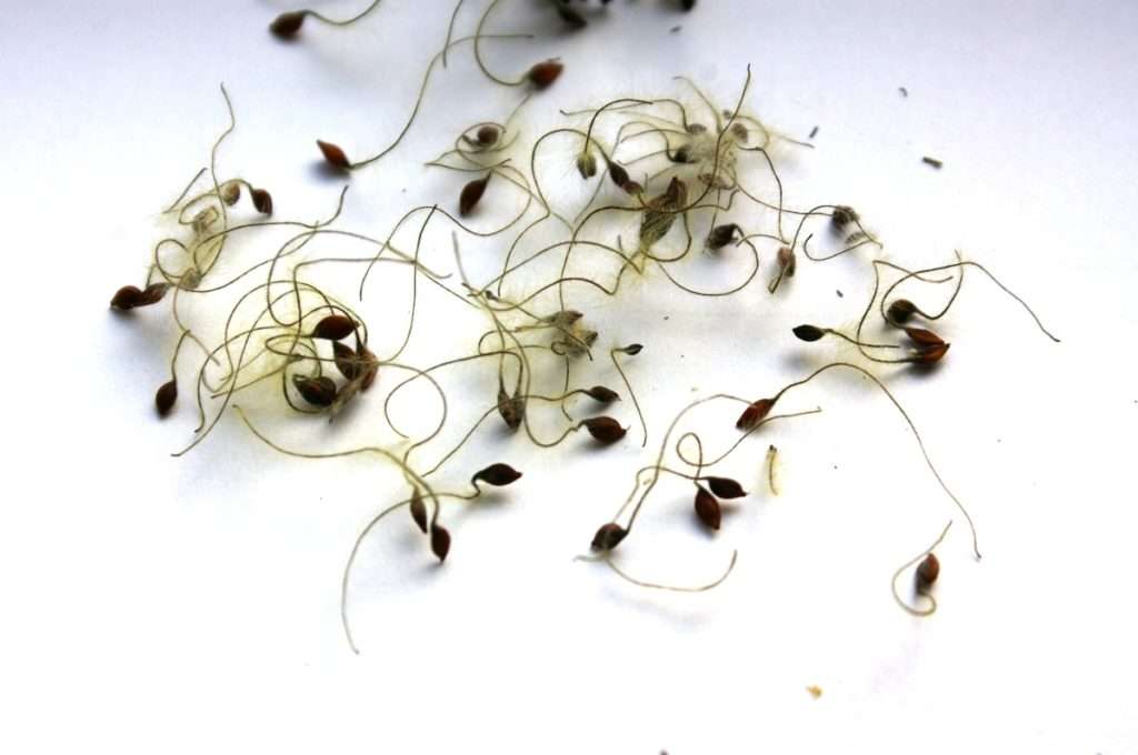 На растениях одновременно находятся бутоны, раскрытые цветы и пушистые сростки семян