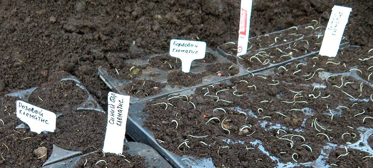 Крупные семена клематисов сажают поздней осенью или в начале зимнего периода, средние – в середине зимы, а мелкие – в марте-апреле. Ниже приведена инструкция для новичков, как посеять семена для размножения клематисов.