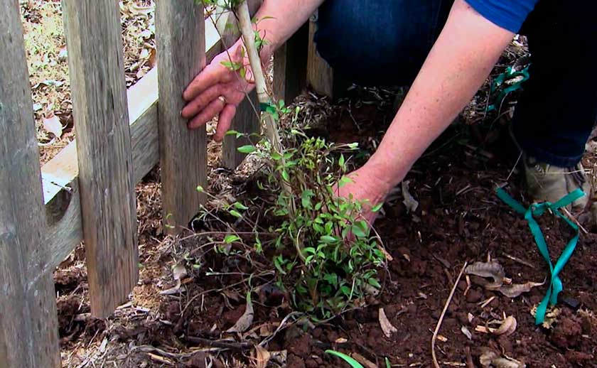 После следует установить опору и подвязать к ней молодой саженец. В окончании посадки почву вокруг следует обильно полить и слегка утрамбовать. Для защиты корневой системы от избытка тепла и для лучшего сохранения влажности почвы рекомендуется использовать мульчу.