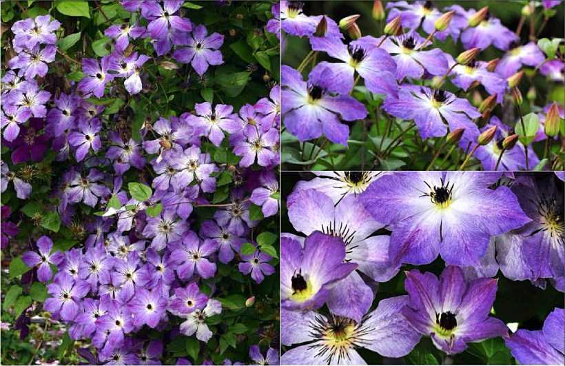Примером таких сортов могут послужить клематисы Jouiniana, Praecox, Petit Foucon или rouguchi. Также хорошо подойдут практически все гибриды, созданные на основе этих сортов.