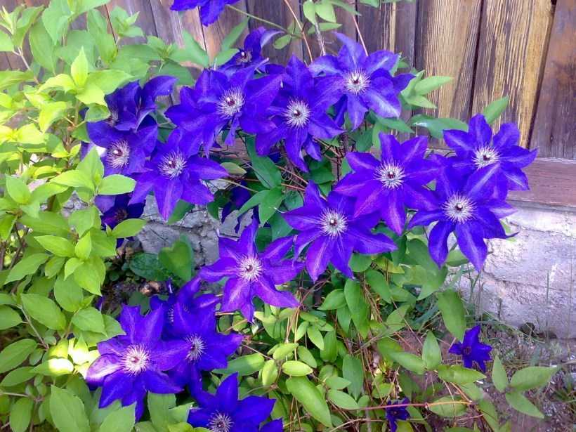 Клематисы придают индивидуальность и декоративный вид типовым хозяйственным постройкам. Ими можно маскировать оголенные стволы старых и некрасивых деревьев, засыхающий кустарник. Они прекрасны на скальных склонах, гротах, каменистых горках.