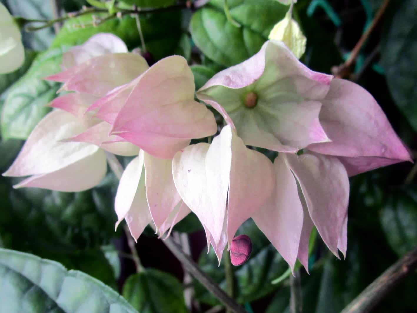 Клеродендрум филиппинский. Вечнозеленый кустарник, с большими бархатистыми темными листьями. Крупное соцветие (до 20 см), формой похожее на букет, состоит из небольших розочек бело-розового цвета. Обладает уникальным ароматом, напоминающим жасмин.
