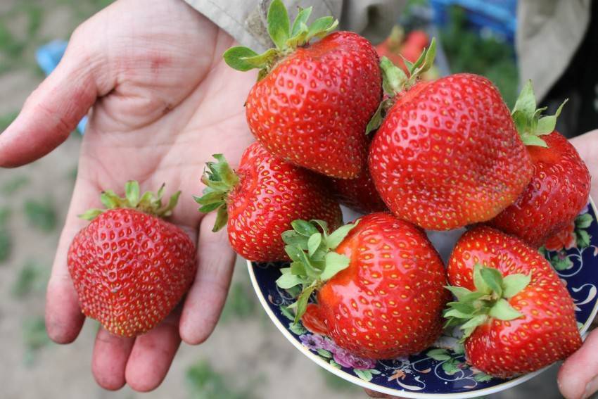 Никаких белых прожилок или пустот в ней нет, что только повышает ценность плодов данного сорта клубники. Вес одной ягоды колеблется в пределах 35–50 г, поэтому даже при небольшой площади насаждений есть все шансы получить большое количество вкусного урожая.