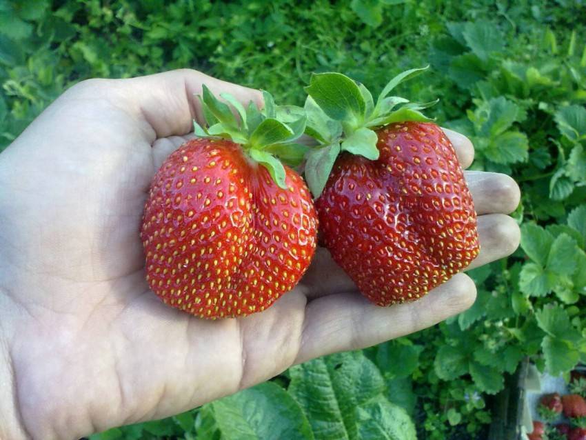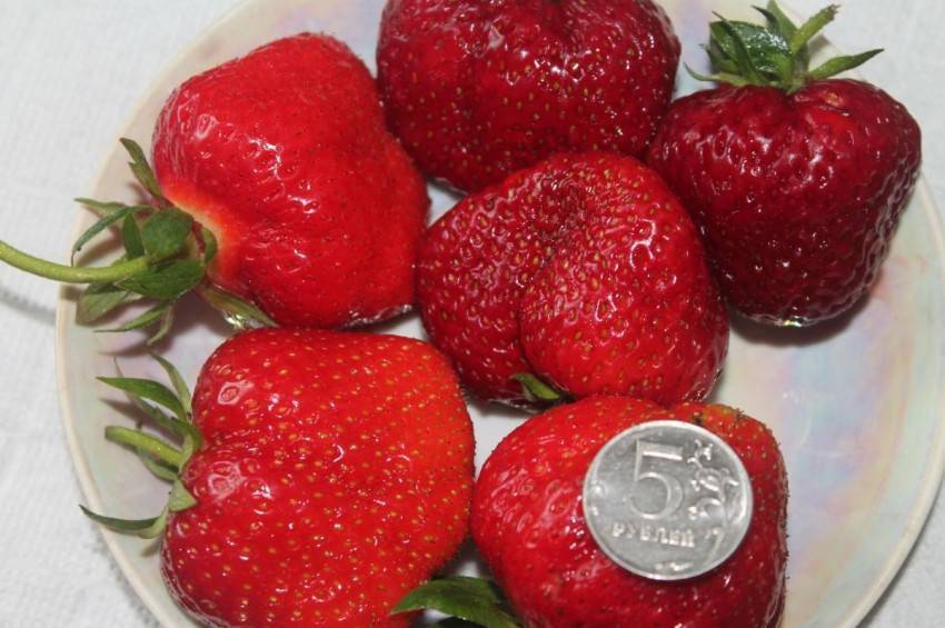 Судя по фотографиям с отзывами дачников, эта американская клубника тоже относится к разряду крупноплодных сортов.