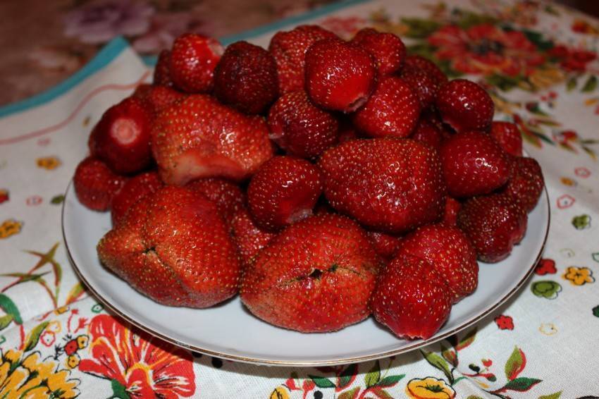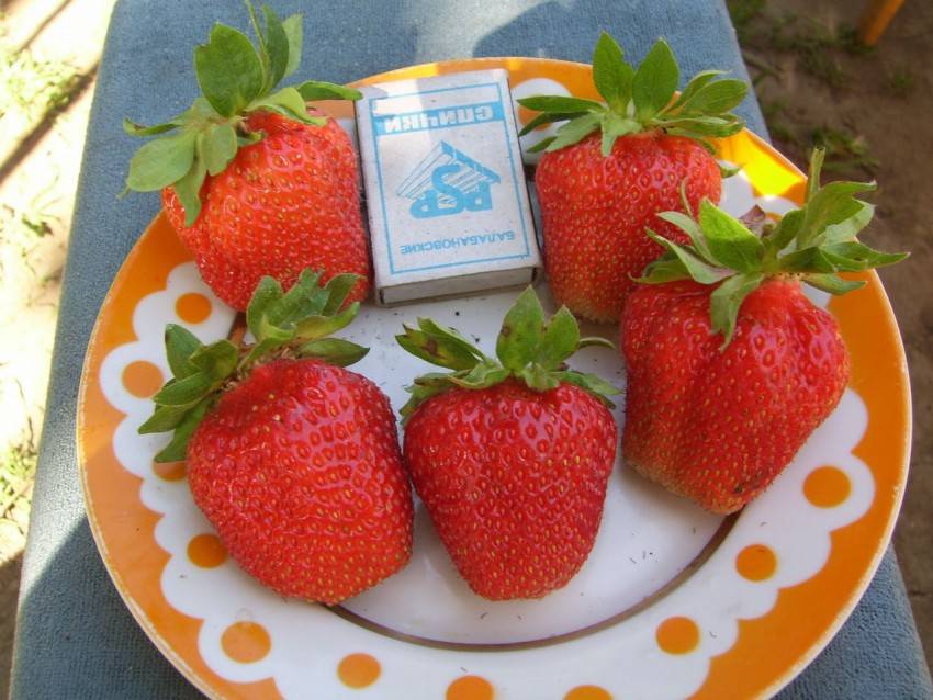 Этой клубнике характерна раннеспелость. Ягодный сезон начинается в июне. Поспевший плод весит до 100 граммов, диаметр его достигает 6-10 сантиметров. Несмотря на крупность, ягода вырастет сладкой и сочной. Мякоть плотная, что позволяет смело транспортировать урожай даже на длительные расстояния. Окраска яркая, красная с глянцевым переливом.