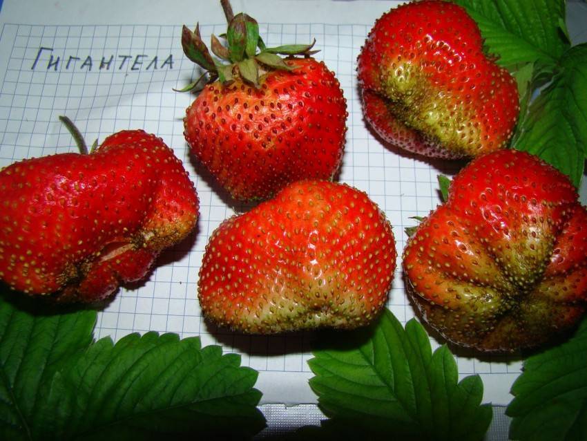 Основная причина того, что этот сорт любят взращивать огородники – это её огромные ягоды. Гигантела на данное время бьёт все рекорды по размерам и весу. Остальные отличительные черты сорта: