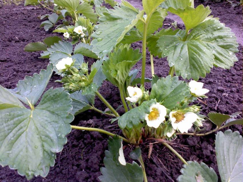 - Перед входом в фазу цветения землянике полезны минеральные вещества.