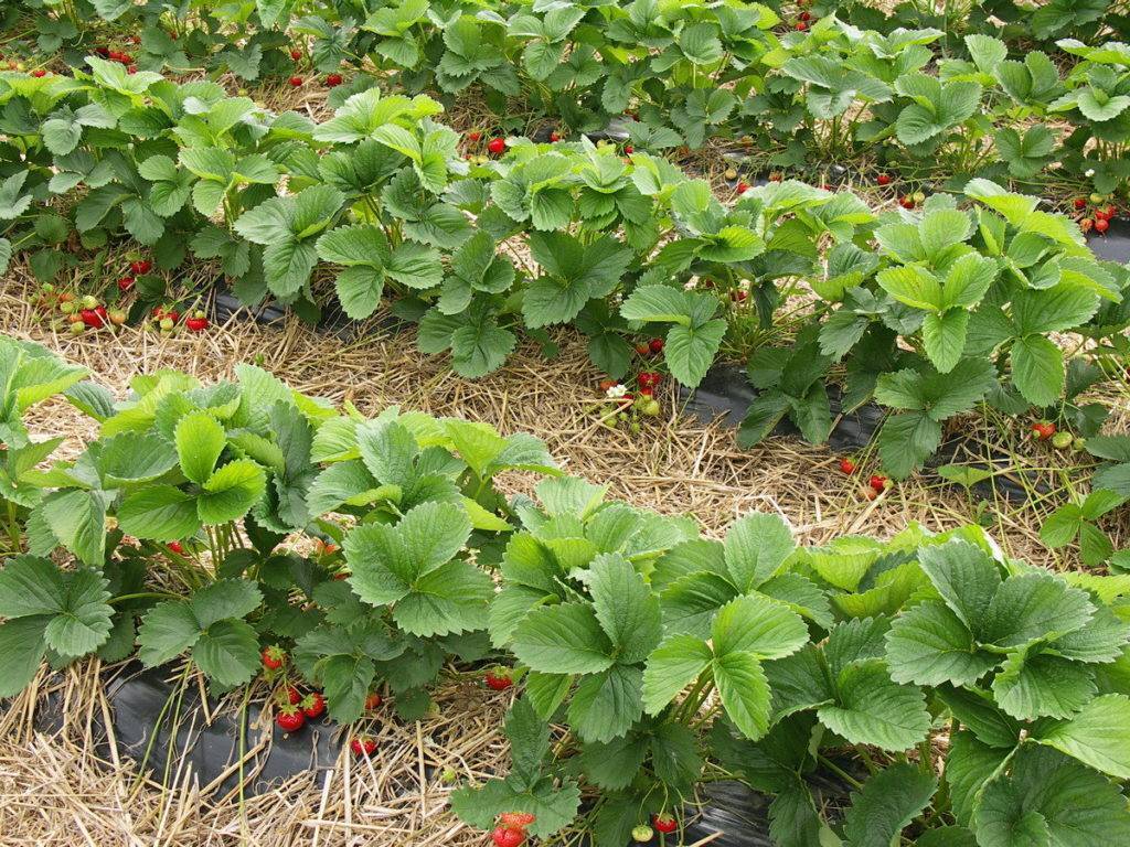 Подсыпка вокруг кустов клубники соломы или другой мульчи избавляет садовода от изнуряющих прополок и рыхлений после каждого полива. В последние годы пользуется популярностью способ мульчирования грядок чёрным агроволокном.