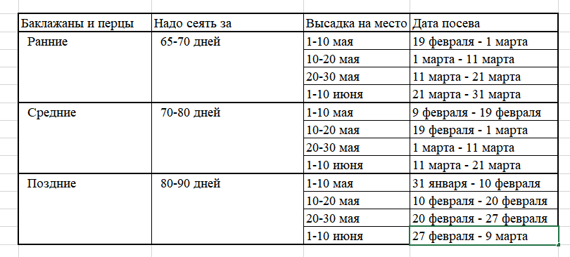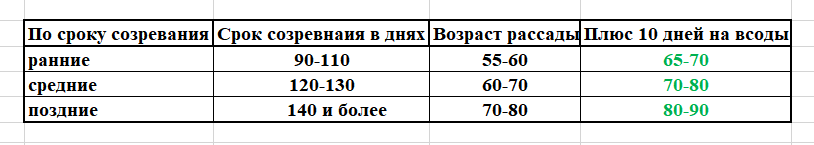 Самостоятельно расчет сроков посева, исходя из необходимо возраста рассады