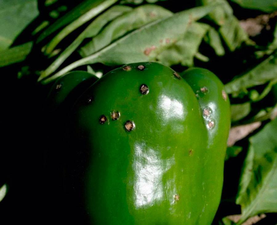 ![]() | Бактериальный рак Признаки: больные растения покрываются темно-коричневыми пятнами. На перцах выступают мелкие точечки, которые со временем сливаются. Меры борьбы: