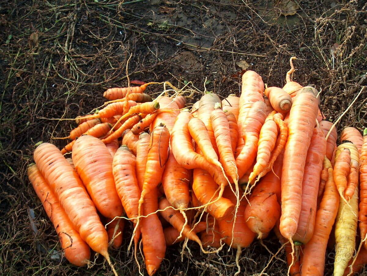 Передерживать овощ в земле также не стоит. Так он потеряет свои вкусовые качества. Выкапывать морковь лучше вилами (чтобы не повредить плоды). Ими слегка взрыхляют землю, затем извлекают морковь, подхватив ее аккуратно за ботву. Остатки почвы следует аккуратно удалить с плодов.