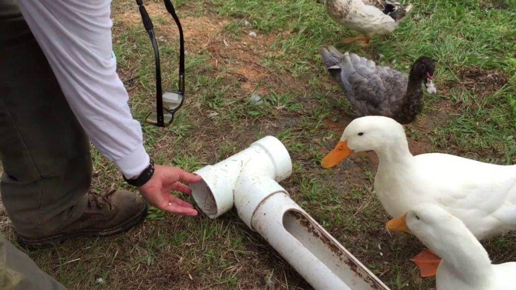Исходя из того, что у фермера имеется под рукой из материалов и инструментов, можно соорудить подходящую емкость. Часто владельцы поголовья уток изготавливают устройства из отрезка канализационной трубы или из пластиковых бутылок крупного размера.