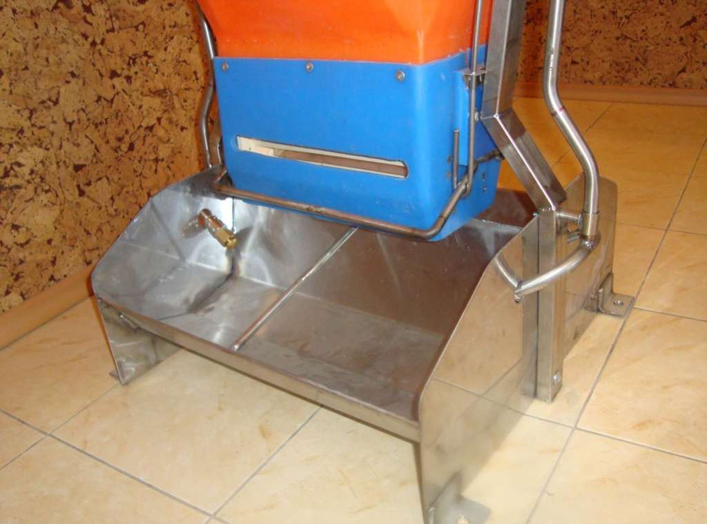 - Бункер соединяют с поддоном, потом приваривают лоток так, чтобы его центр совпал с ребром.