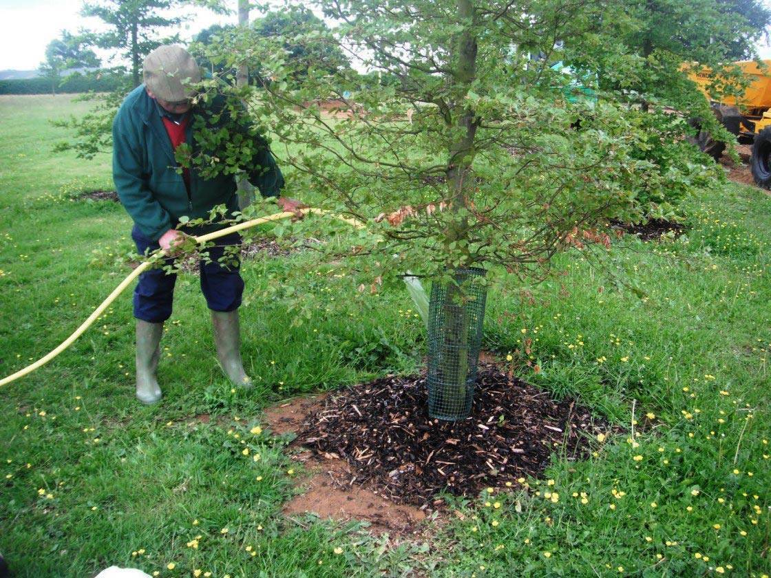 Обильно поливают грунт, затем равномерно распределяют питательную жидкость по кругу.