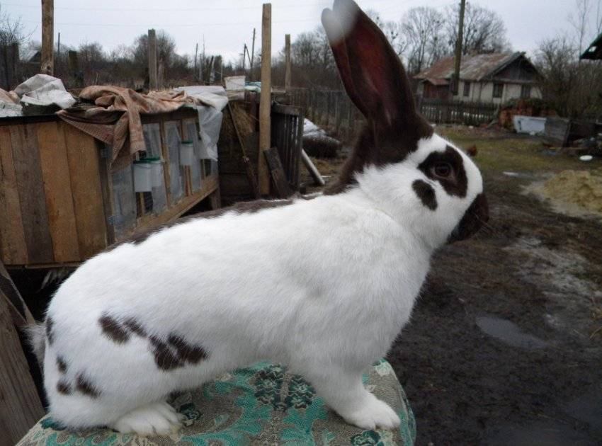 Чистокровный кролик-строкач обладает определёнными характеристиками. От некоторых возможно отступление, однако в целом породистый немецкий пёстрый великан отличается такими чертами: