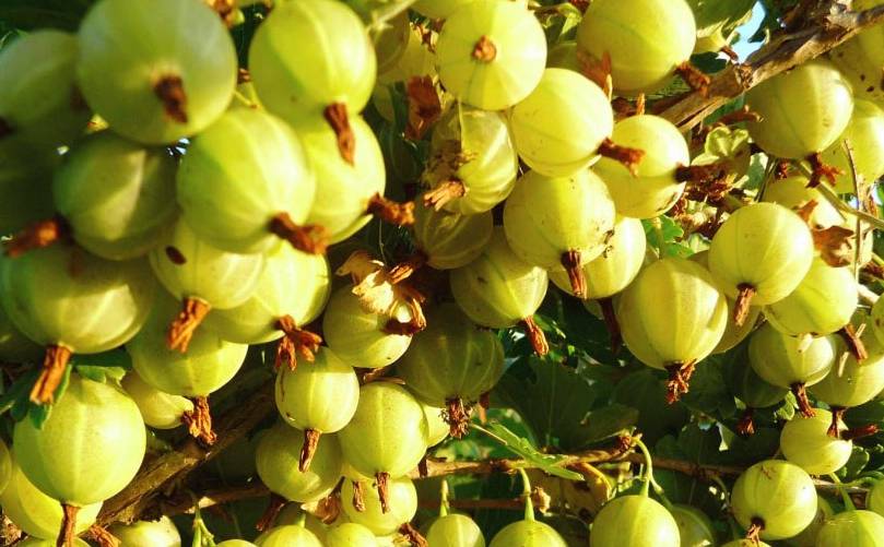Шипы у этого сорта крыжовника расположены внизу веток, поэтому почти не мешают сбору ягод.